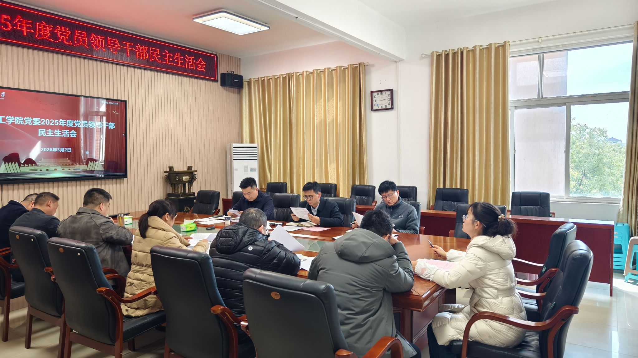 2025年度党员领导干部民主生活会在14教西303会议室召开。校党委常委、副校长赵辉,校纪委委员、机械工程学院党委书记杨德强及联络员沈俊廷到会督导。学院党委书记王丽主持会议。