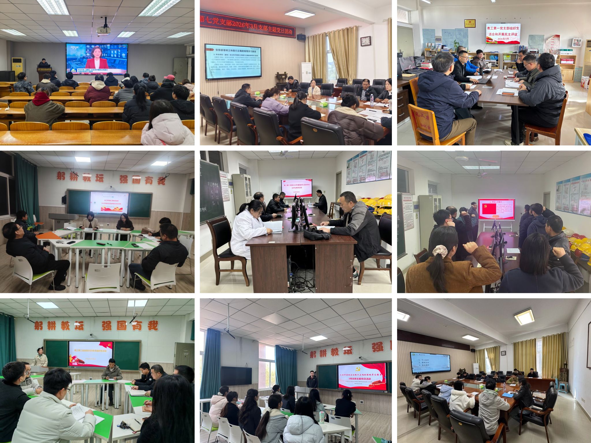 在支部主题党日活动中,各党支部严格落实党的组织生活制度,庄严重温入党誓词,集体诵读《中国共产党章程》(第四章),进一步强化党员身份意识、宗旨意识和责任意识。各支部认真传达学习党中央关于在全党开展树立和践行正确政绩观学习教育的决策部署,组织党员深入学习《求是》杂志发表的重要文章《让愿担当、敢担当、善担当蔚然成风》,学习中办印发《通知》精神,学习中央党的建设工作领导小组会议精神,学习湖北省委常委会(扩大)会议精神和学校党委关于开展树立和践行正确政绩观学习教育的具体安排,引导党员干部从思想深处解决好“政绩为谁而树、功勋为谁而立”的根本问题,进一步增强践行正确政绩观的思想自觉和行动自觉。