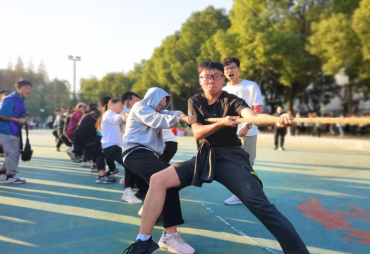 赛场上,同学们英姿飒爽,平日里站在三尺讲台上的老师们也毫不逊色。阳光洒遍操场,同学们热情洋溢。操场上到处是同学和老师运动的身影,在脚踢保龄球的比赛项目中,老师们与学生排成一列轮流参赛,只见刘桂生老师抬脚踢向足球,接连倒下了8个保龄球,顿时引来同学们的欢呼声。旁边的百变接力项目,加油声欢呼声不断,一名男生一个箭步冲过去,起跳,投篮,篮球在空中划过一条优美的弧线后稳稳的落入篮中。活动最后,各班分别进行了拔河比赛,加油呐喊声在操场上此起彼伏,随着拔河比赛的结束,本次运动会的各项比赛也正式结束。