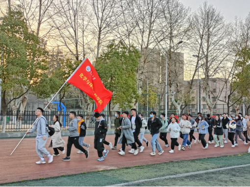 学生会成员带领大家绕着田径场奔跑,带着对未来的憧憬勇敢前行。