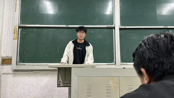 化学类32301班的李浩然在课前分享自己通过英语四级考试的心得体会,他认为词汇积累是基础,备考四级的同学要抓住考试前的宝贵时间,争分夺秒地积累词汇;听力薄弱的同学要学会精听,听读写结合,反复训练,不浪费每一道真题。同时鼓励通过四级考试的同学备考六级,争取在今年六月的六级考试中取得优异的成绩。