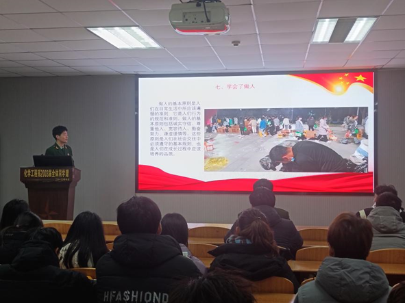 于14教北201举行征兵宣讲活动。本次活动由辅导员周学素老师主持。