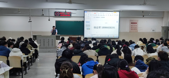 杨会军通过分享学院优秀同学的事迹,鼓励同学们找到榜样力量,认真规划自己的学习生活,树立专业信心,提升专业技能,拓展各方面能力素质,做到全面发展。他提醒同学们在即将到来的期中期末考试要做好复习计划,沉着应考,禁止作弊。同时他还详细介绍了本院保研规则与保研名额,使同学们对学院保研情况有所了解,并鼓励大家做好考研与就业规划,选择适合自己的目标院校和就业单位。