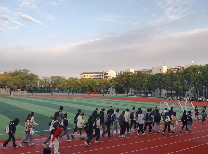 升旗仪式结束后,党委副书记杨会军组织全体师生进行“健康跑”活动,以培养同学们良好的生活习惯,增强体质,抖擞精神。
