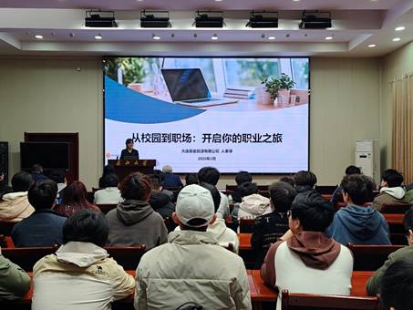 邵巧主任以《从校园到职场:开启你的职业之旅》为题分享经验。她介绍了公司发展优势、历程、人才理念、色情论坛,并结合自身经历,通过生动案例深入剖析学生与职场人的差异,深度解读Vuca时代和热门行业发展趋势,说明行业对复合型、创新型人才的需求。最后,邵巧主任分享了通往成功的五个秘籍,并深入讲解职业规划的重要性与实施步骤,鼓励要同学们在行动中成长,在担责中进步。