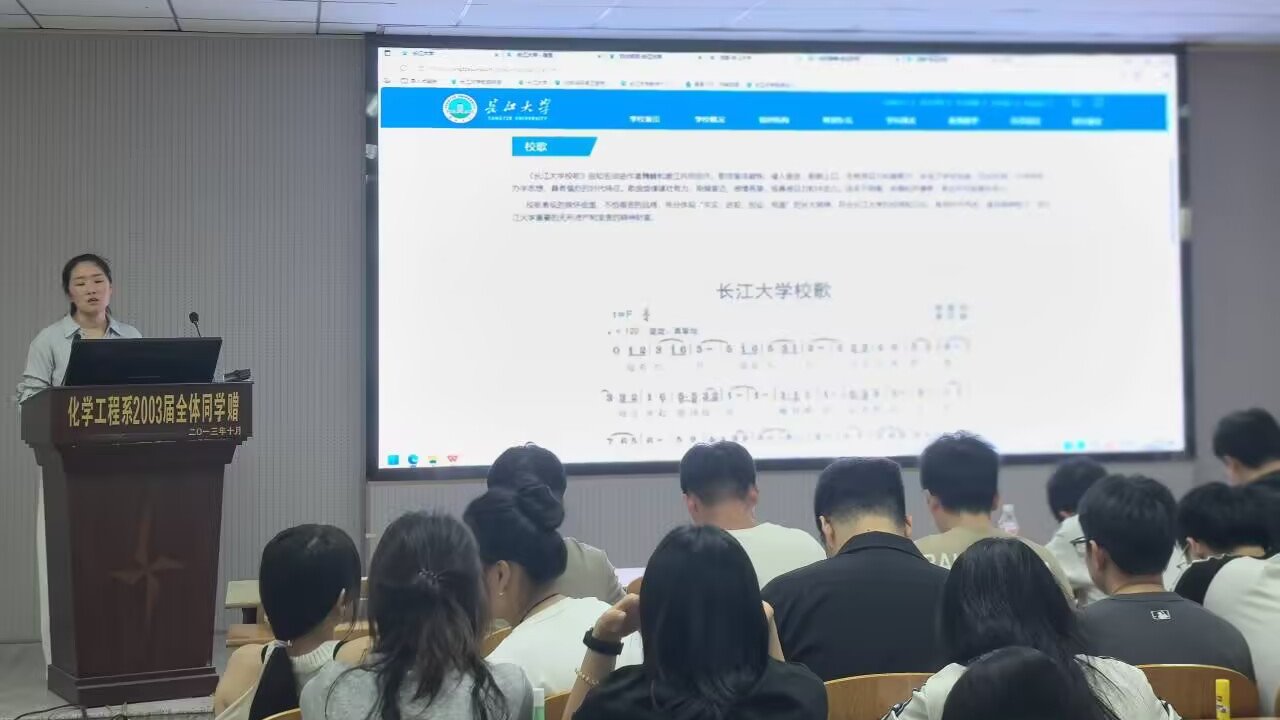 在14教北201教室面向全体2025级研究生举办校徽学习与校歌练唱活动。辅导员王陈老师主持讲解,班委协助组织,为新生带来一堂生动的“校园文化第一课”。