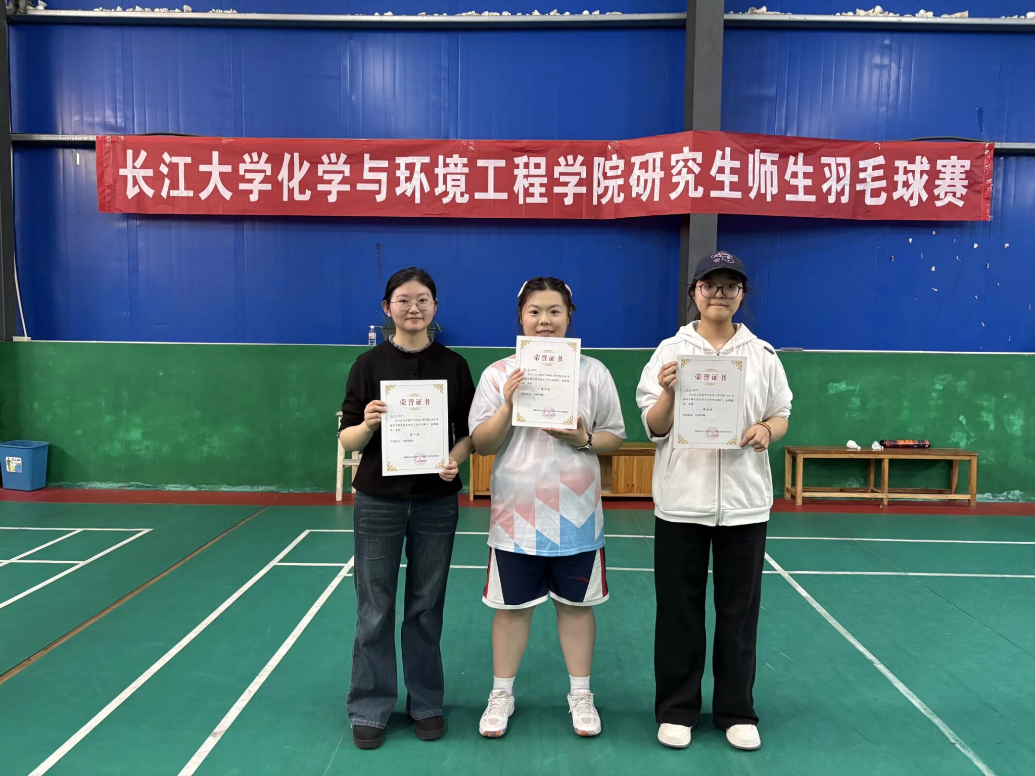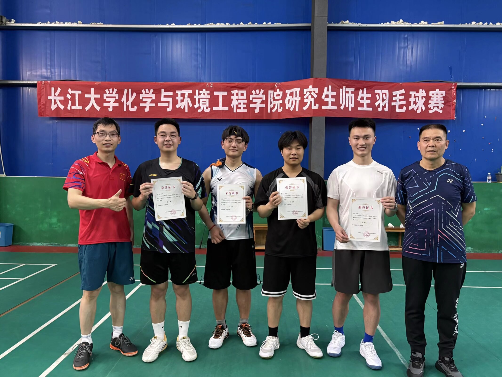 激烈角逐后,2024级研究生陈欢同学斩获女子单打冠军,蔡凯老师摘得男子单打冠军。随后举行颁奖仪式,仪式结束后,全体参赛师生手持学院院旗合影留念,鲜红院旗与意气风发的笑脸交相辉映,定格下本次师生羽毛球赛圆满落幕的精彩瞬间。