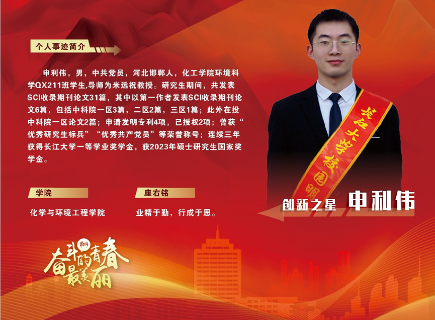 进入大学以来,申利伟始终把专业学习放在首位,他知道,只有牢固的专业知识才是今后工作的根本。在本科期间必修平均绩点4.09,名列专业第一,多次获得国家励志奖学金、三好学生等荣誉称号。在学习书本知识的同时,他还积极加入学院老师实验室,在导师和学长的帮助下开展大创项目,并获得了湖北省大学生化学化工学术报告会二等奖。大四时以专业第一保研至本校继续攻读硕士研究生,目前顺利通过了四六级考试,并连续三年获得了色情论坛