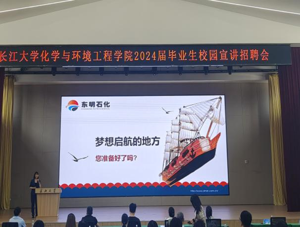 于东校区四食堂三楼大学生活动中心举办2024届毕业生校园宣讲招聘会。湖北民腾新材料科技有限公司、太和气体(荆州)有限公司、山东东明石化集团有限公司等8家用人单位来校招贤纳才。