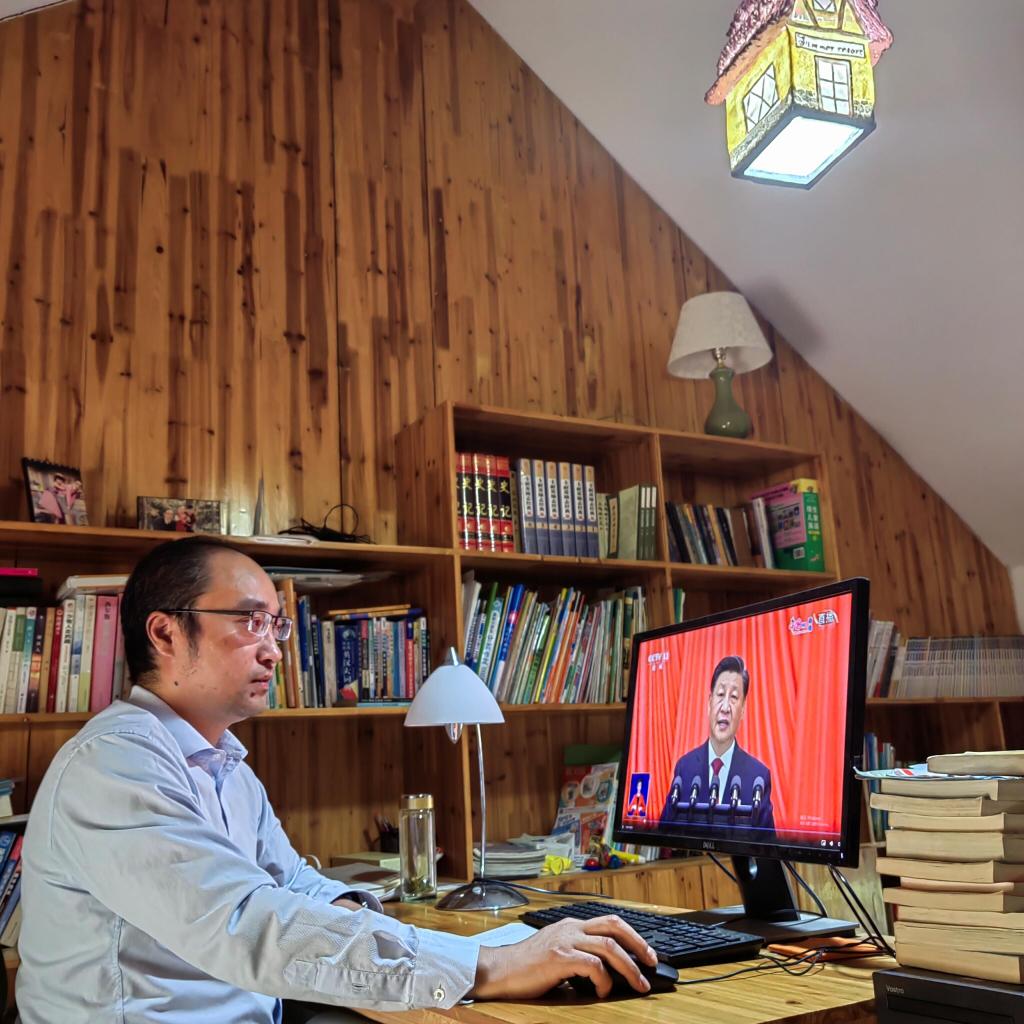 应化12001班续子傑与室友一起观看二十大开幕直播
