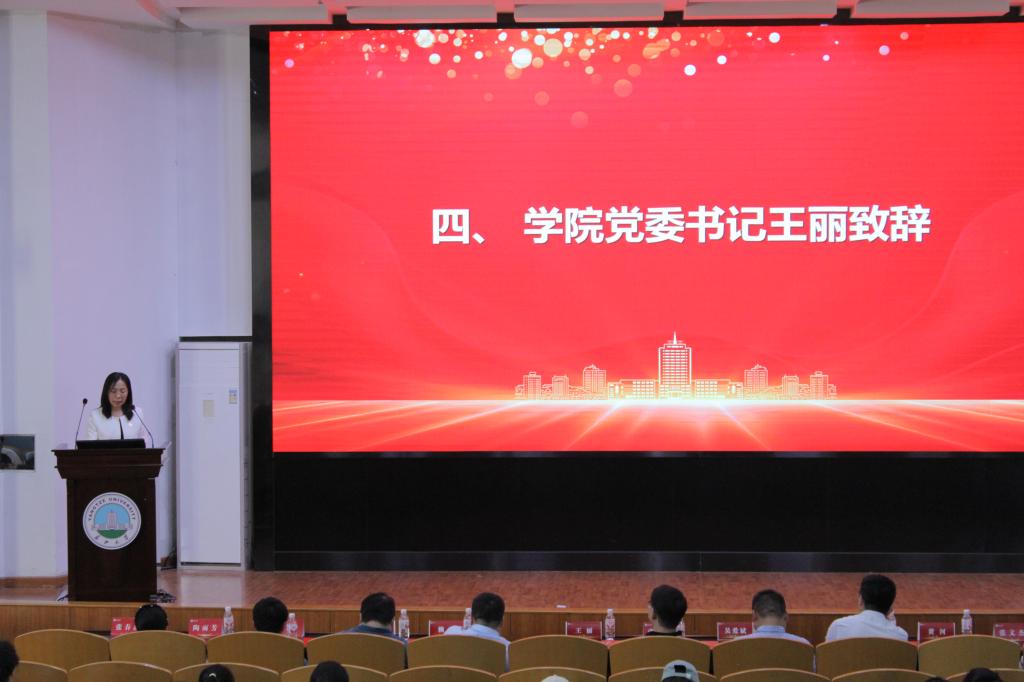 学院党委书记王丽的赠言将大会推向温情高潮。她以“临行密密缝,意恐迟迟归”般的深情,为毕业生送上《最后一课》,字里行间饱含对学子们的殷切期望与深深祝福,嘱托同学们在未来道路上保持对知识的渴望,继续逐梦前行,书写新的人生辉煌。
