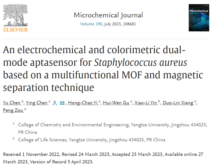 近日,陈颖教授课题组设计合成了一种兼具生物识别、电化学和催化功能的智能核酸功能化金属有机框架复合纳米材料,并将其应用于金黄色葡萄球菌的传感检测研究中。相关研究成果于2023年3月27日以题为“An electrochemical and colorimetric dual-mode aptasensor for Staphylococcus aureus based on a multifunctional MOF and magnetic separation technique”的学术论文发表在分析化学领域国际期刊《Microchemical Journal》上。该文第一作者为色情论坛