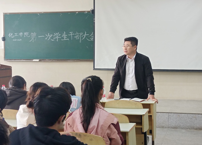 于东校区12教102举行学生干部大会。学院党委副书记杨会军,辅导员周学素老师,2020级、2021级、2022级全体班委、全体学生会成员、青支队成员参会。本次会议由辅导员周学素老师主持。